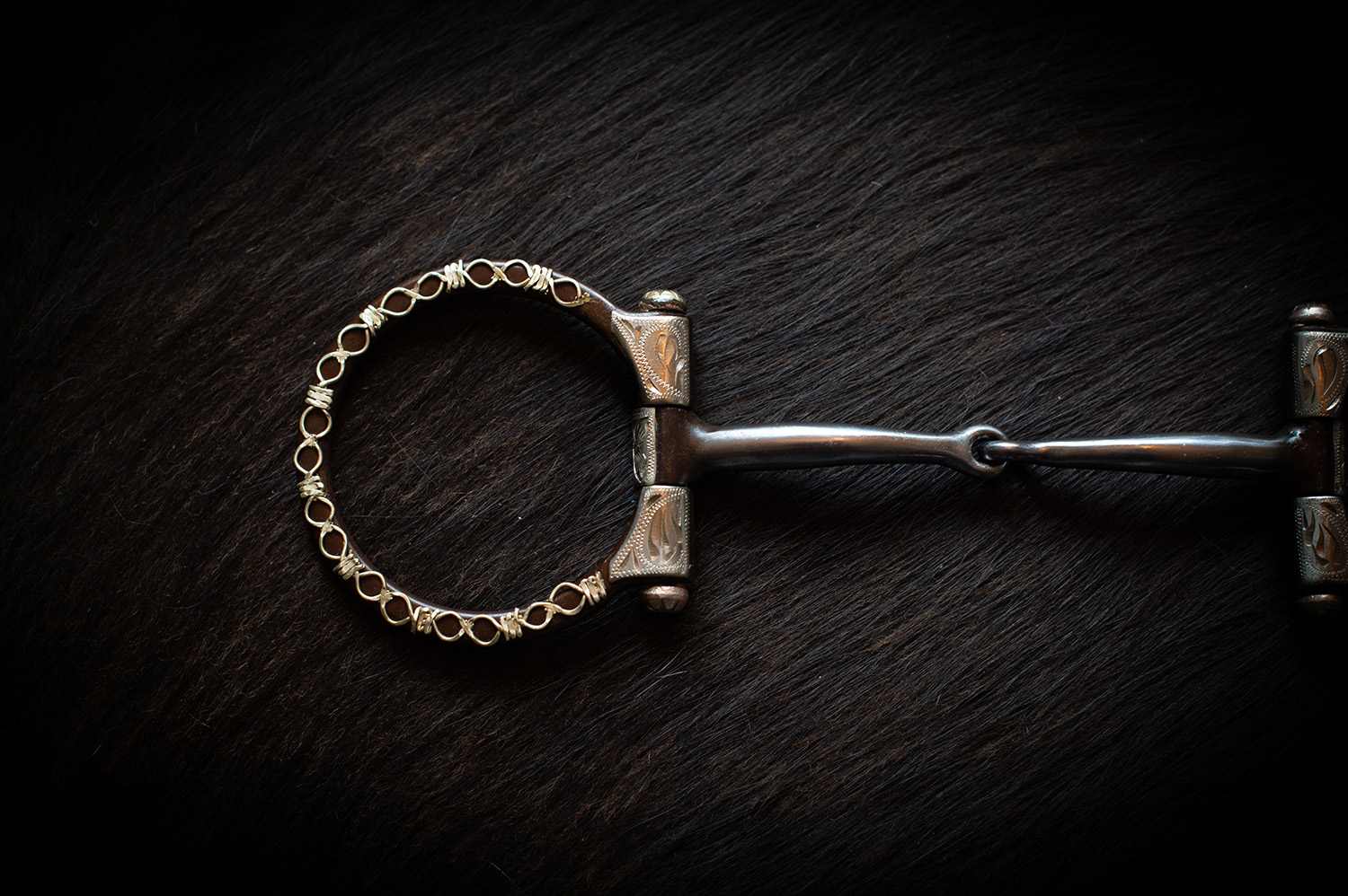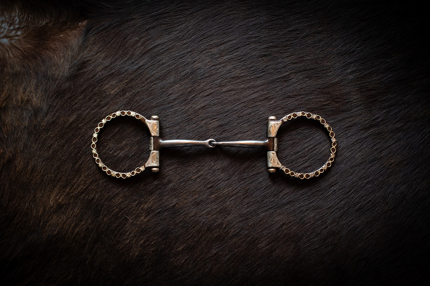 Brown Steel Snaffle Style Bit with barbwire silver trim