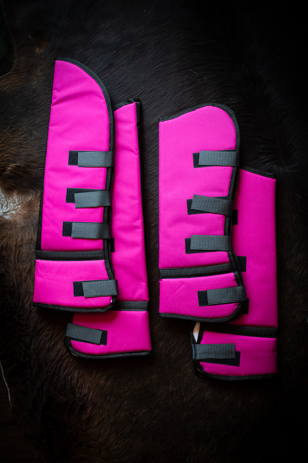 Jedes Set enthält vier Gamaschen: zwei für die Vorderbeine (53 cm hoch) und zwei für die Hinterbeine (63,5 cm hoch).